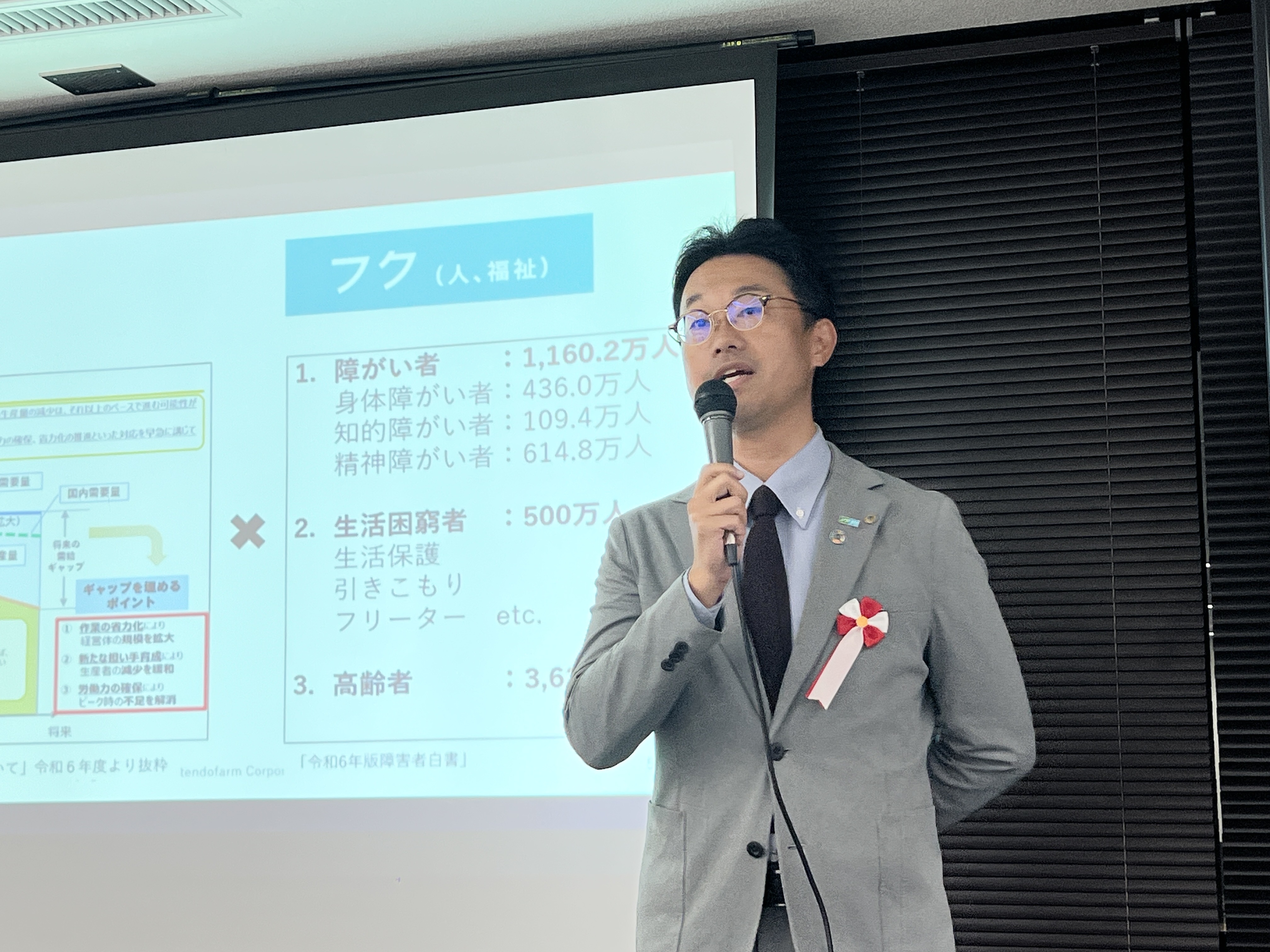 農業の人手不足と障害者等の雇用創出をマッチングする農福連携事業を展開。後継者不在のブドウ園を再生し、年間16,600房の収穫を実現。規格外品のジャム加工やローソンでのバターサンド販売など付加価値創造により、SDGs13項目に貢献する持続可能なビジネスモデル構築。